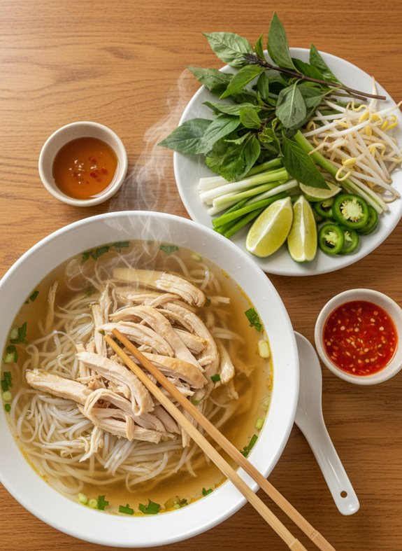 Bright, aromatic Vietnamese Pho Ga awaits with tender chicken, silky noodles, and fragrant herbs—but the secret to authentic flavor lies within.
